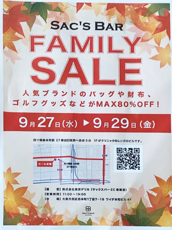 招待状不要!SAC’S BARファミリーセール開催(2023年9月大阪開催)