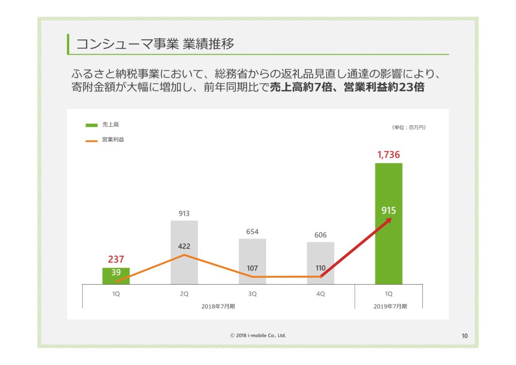 ちなみにさとふるは、ソフトバンクグループですし、特に闇ふるさと納税の案件が多かったふるなび運営のアイモバイルは、ふるさと納税事業のセグメント利益は昨年対比23倍!です。