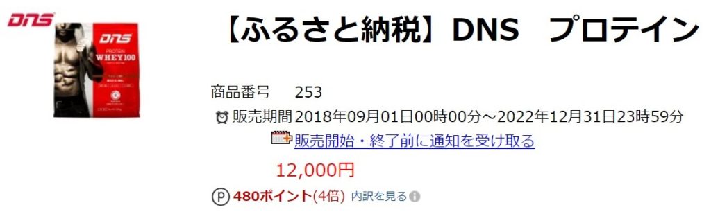 あまり種類は選べないようですが、定番のプロテインホエイ100 1,000gでふるさと納税 12,000円。