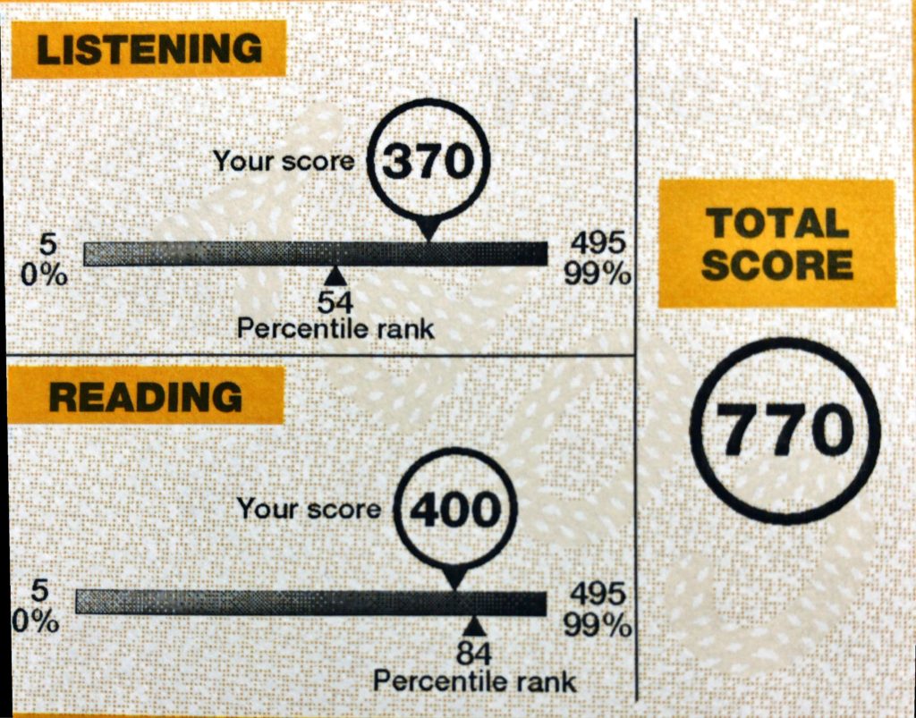 そんな感じでちんたら勉強してるので、数年かけてやっとTOEIC700点越えれるようになったというレベルです。