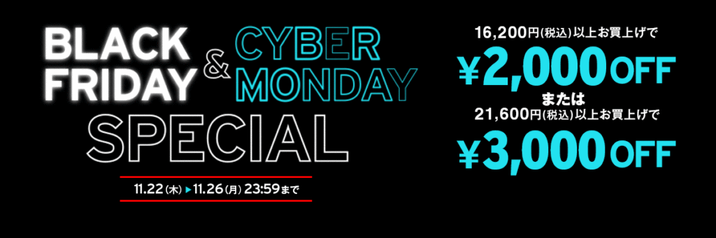 16,200円(税込)以上で2,000円OFF または21,600円(税込)以上で3,000円OFF