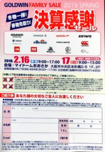 大阪 ゴールドウィン ファミリーセール開催 2019年2月16日・17日