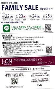 株式会社ジオン商事 ファミリーセール開催 2021年9月