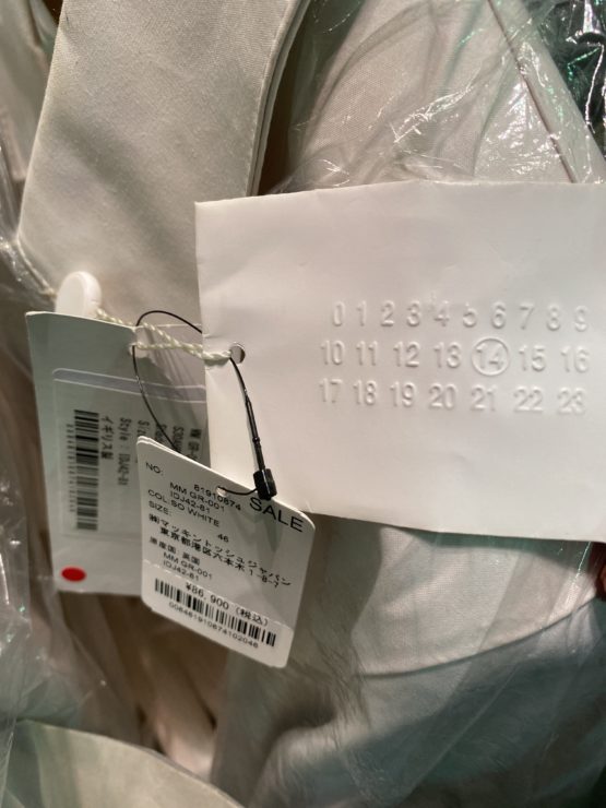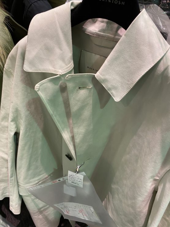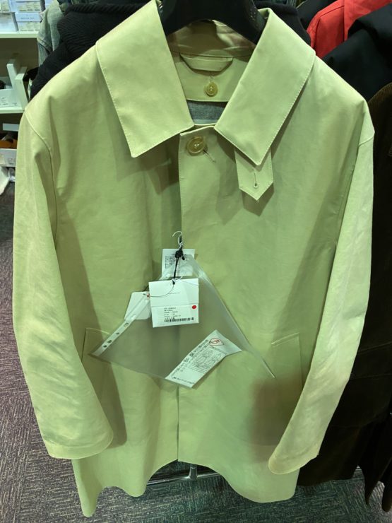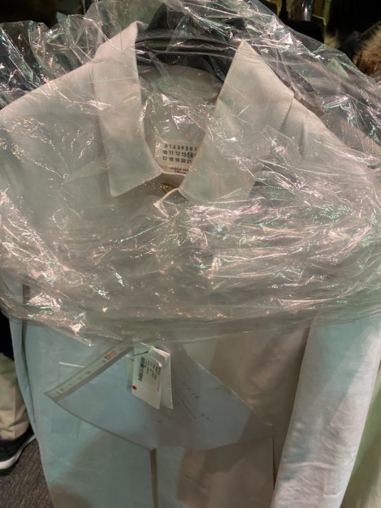 マッキントッシュとマルジェラのコラボのコートもいくつか出てました。なぜそんな人気のコラボアイテムが出ているかというとアイボリーカラーのため、汚れなどのB品がでてるんですね。修正屋さんから、修正不可の下げ札もそのままついていて、現場の人の苦労もうかがえる感じでした。。
