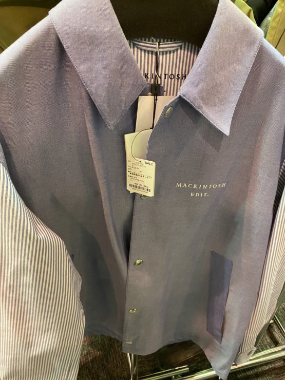マッキントッシュ自体が、コートで有名な割とベーシックなアイテムが多いブランドなので、それほどセールに出す商品がないのだと思われます。その中でも、今回初めてみたんですが、と MACKINTOSH EDIT. いうラインの商品が多かったです。 アウターより、羽織っぽいものが多かったですが、割と着やすそうなアイテムが多かったです。普通ともいえますが。。。