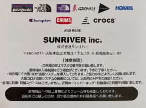 ノースフェイス、パタゴニア、ホカオネオネなど販売!株式会社サンリバーのファミリーセール開催(2021年12月開催)