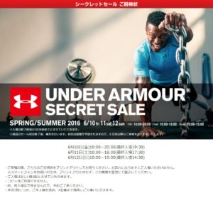 アンダーアーマーの公式サイトで、コンプレッションウェアを買ったら、シークレットセール(ファミリーセール)の招待状のメルマガが来るようになったので、行ってきました。