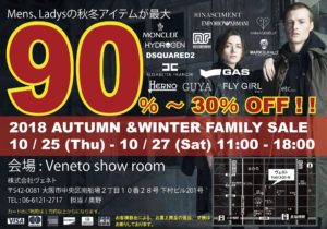 10月25日(木)より、インポート卸 株式会社ヴェネトのファミリーセールが開催されます。