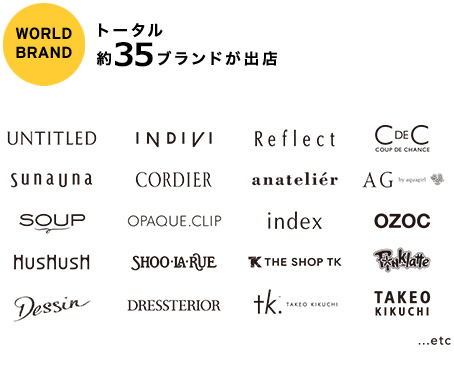 アンタイトル、インディビなどワールドのブランドのほか、協賛ブランドも参加するセールとなります。