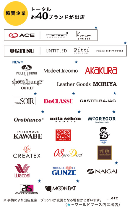 東京会場もワールドのブランド並びに協賛ブランドが参加します。