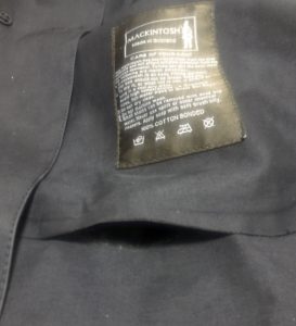 愛用しているマッキントッシュのゴム引きコートなのですが、ブランドの特性としてパーツが、縫製でなくて、テープで接着されています。