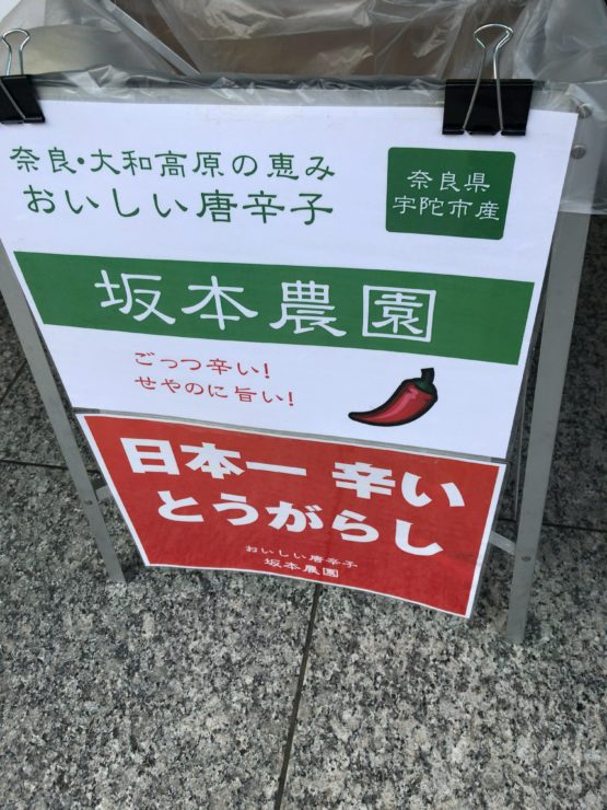 早速、農園の方らしい販売されていた方に伺ってみると奈良の農家で作られた辛さにこだわった唐辛子だそうです。