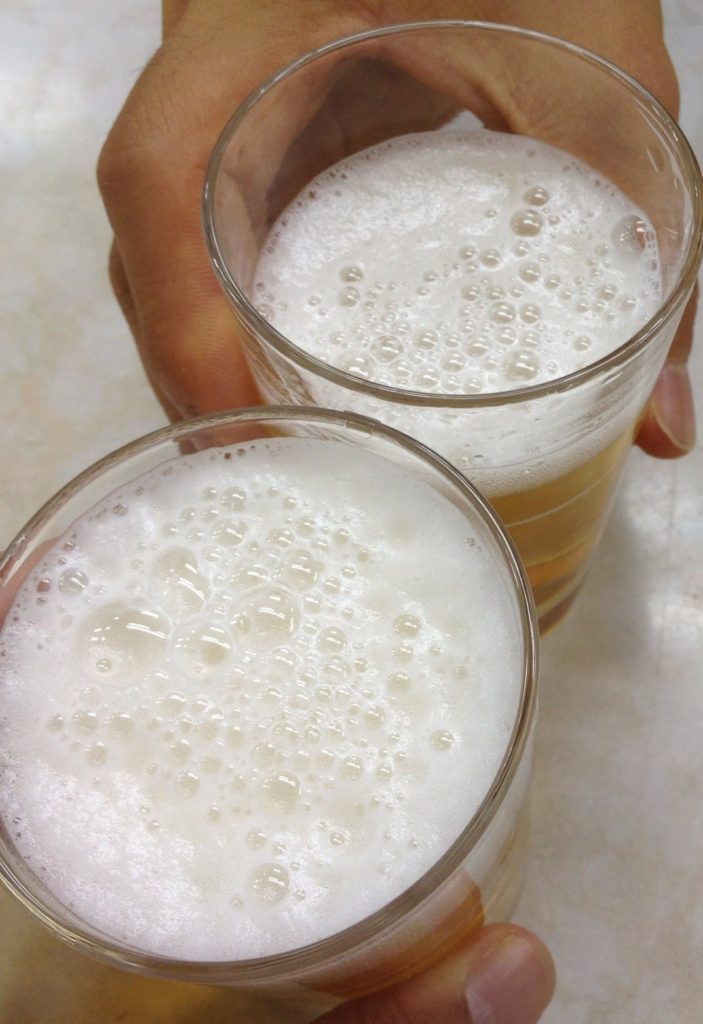 とりあえず、ビールで乾杯。生ビールはないので、瓶ビールになります。赤星もあります。
