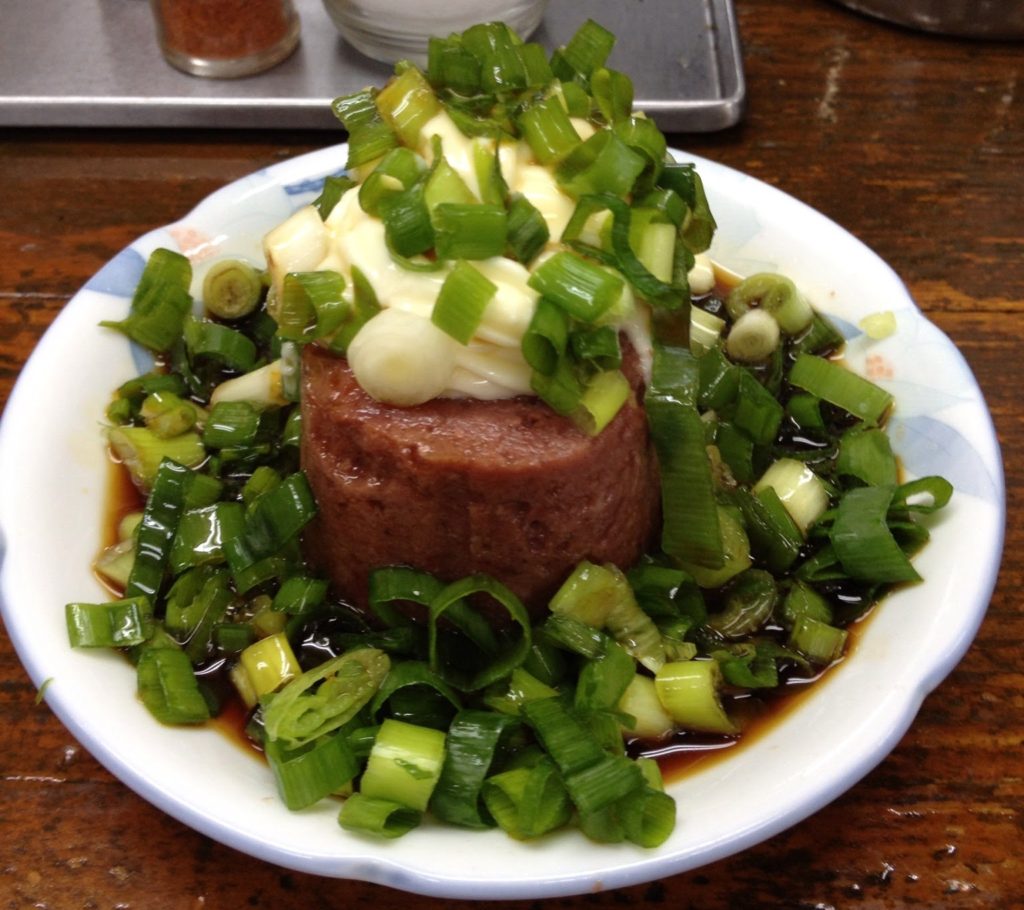常連に人気の「コマネチ」。コンビーフにマヨネーズとネギかけてレンジでチンしてるからコマネチw。