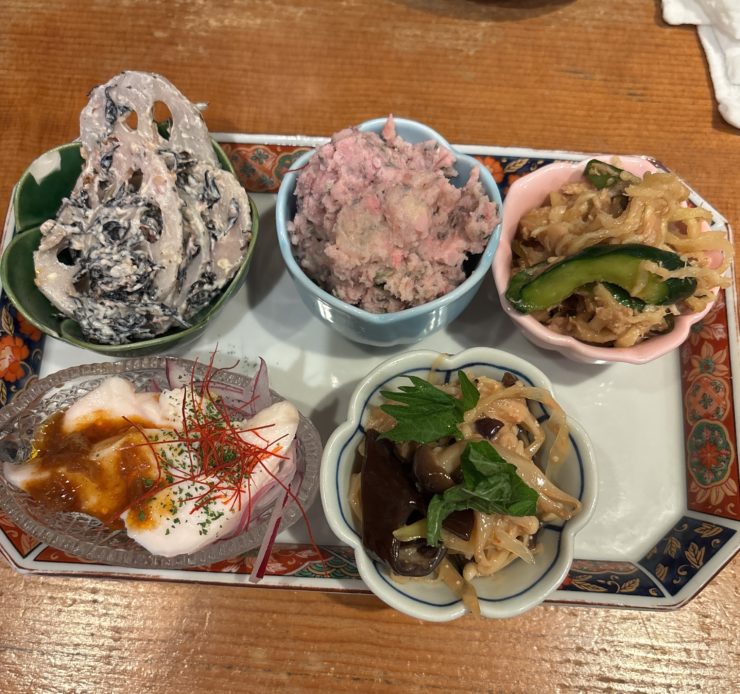 福島の人気立ち飲み店の支店ができてました。一人で行ったときだけ頼めるアテの盛り合わせがいろんなものを少しずつ食べれてお勧めです。