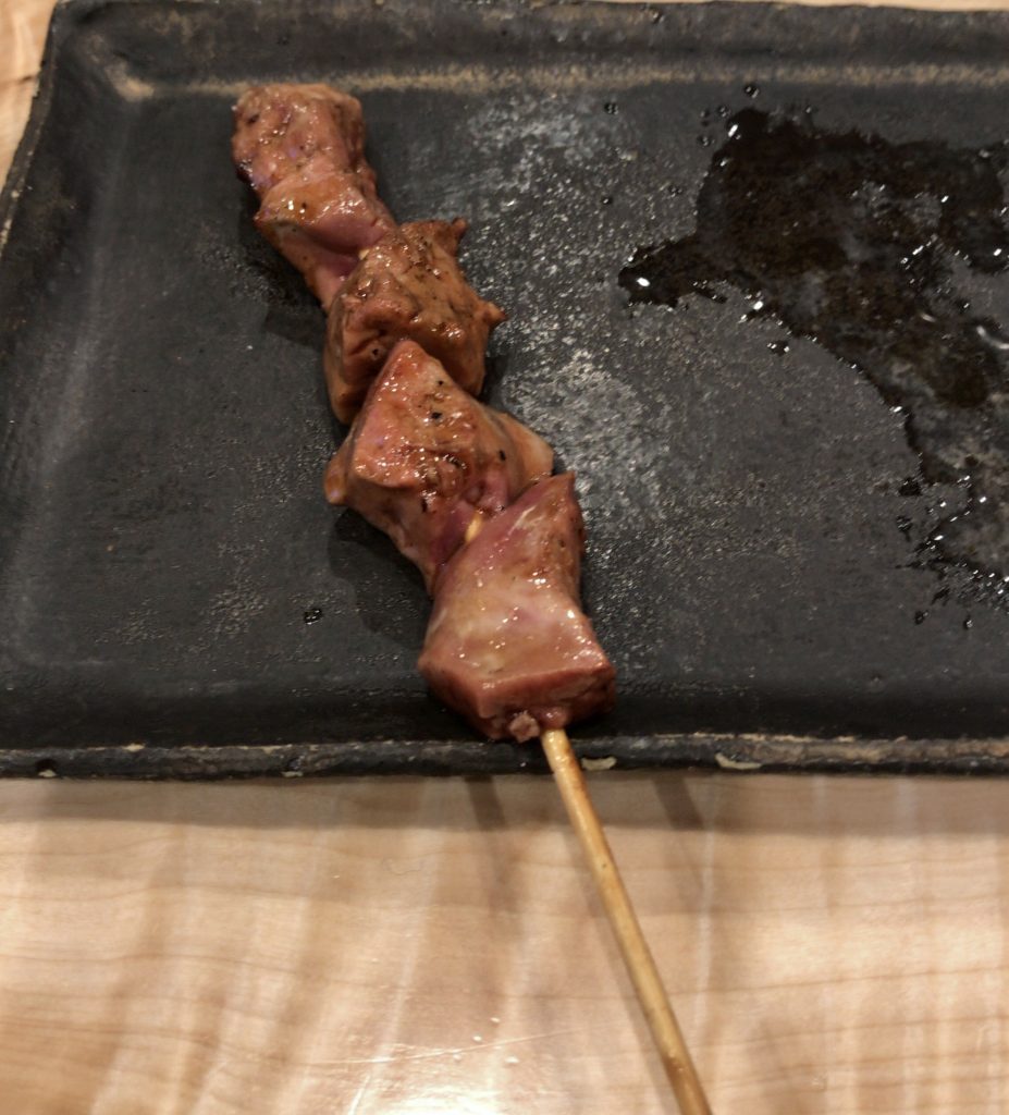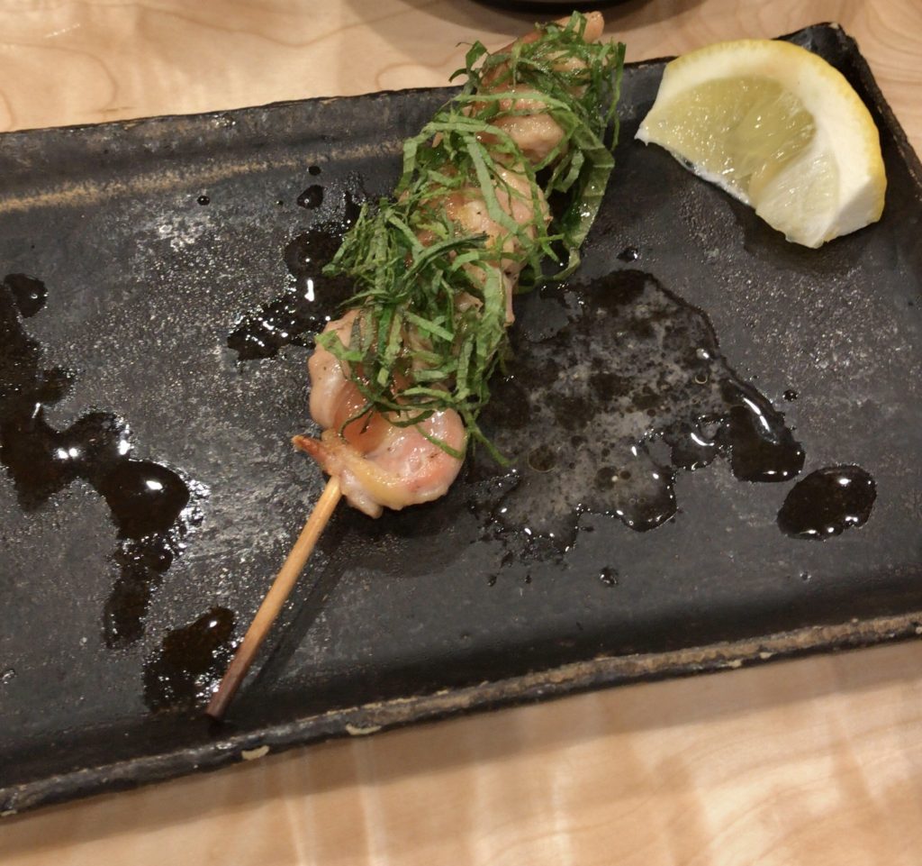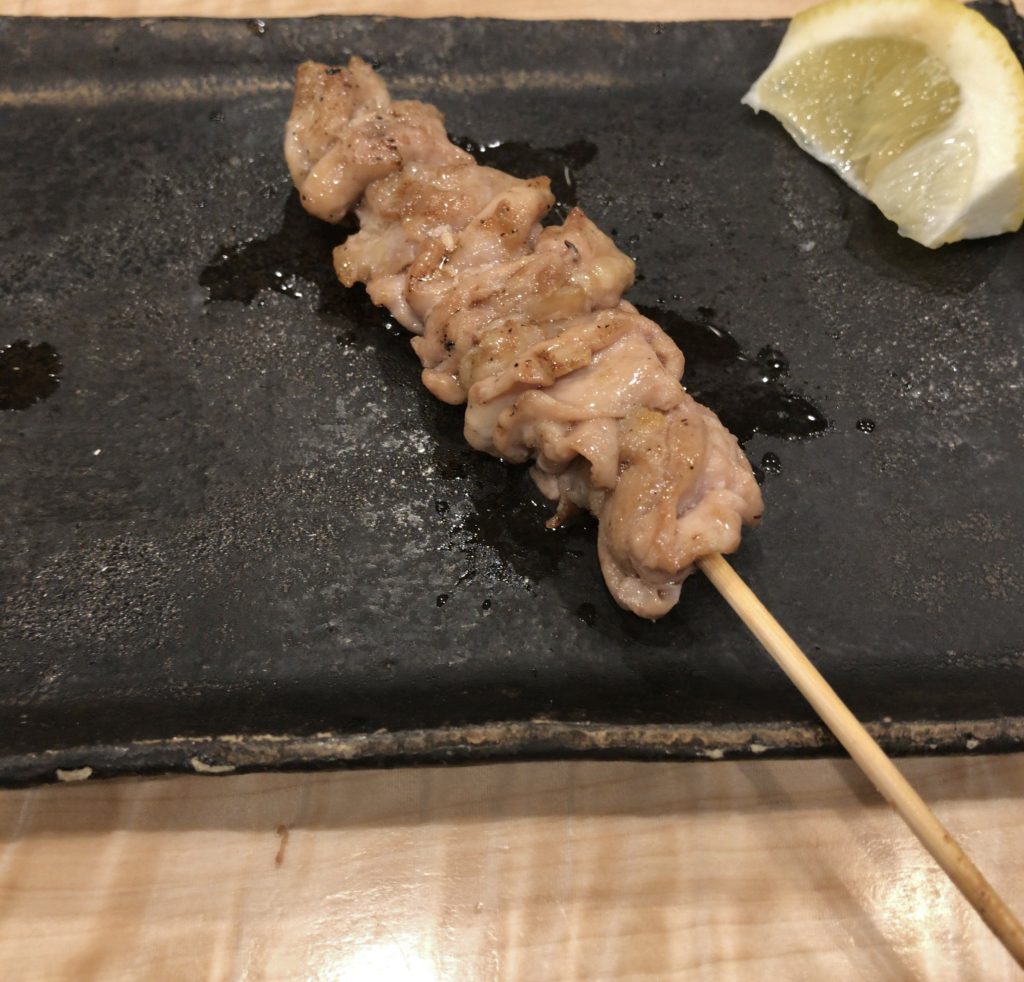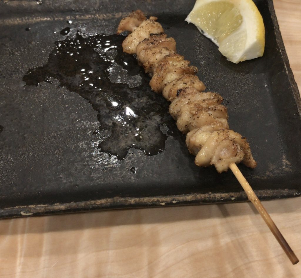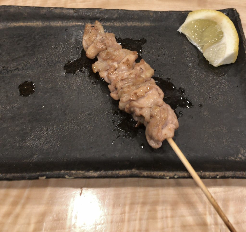 焼き鳥が1本ずつ。提供されます。コースにははいってなかったけど、玉ひもも美味しそうだったので、次回注文したい。