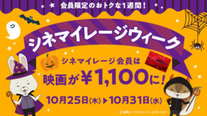TOHOシネマズの会員向けに映画が1,100円で見られるシネマイレージウィークが、10月25日(木)~31日(水)開催されます。