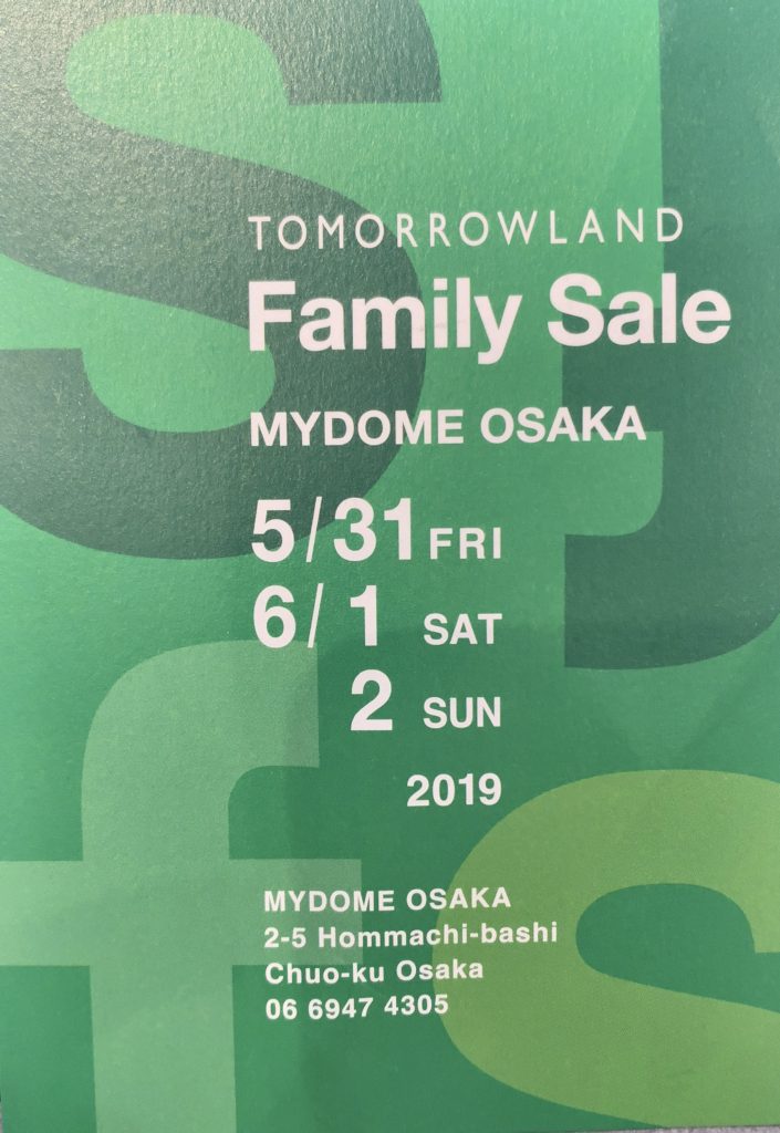 大阪 「トゥモローランドファミリーセール」開催2019年5月31-6月2日