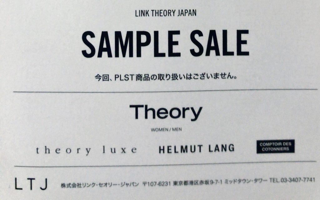 セオリー、ヘルムートラングなどリンク・セオリーグループ サンプルセール (大阪・東京)2019年3月