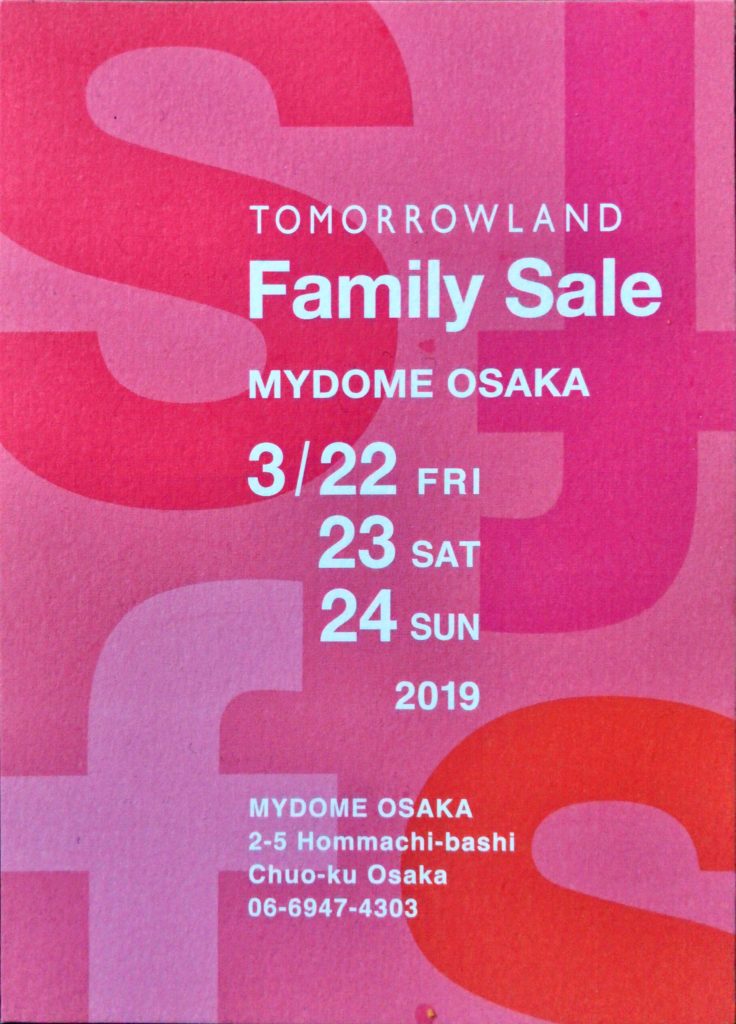 大阪 「トゥモローランドファミリーセール」開催2019年3月22-24日