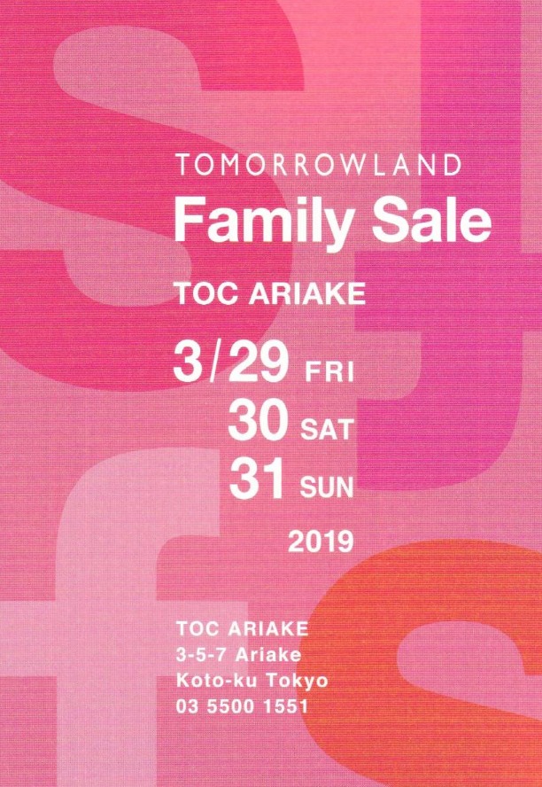 東京 「トゥモローランドファミリーセール」開催2019年3月29-31日
