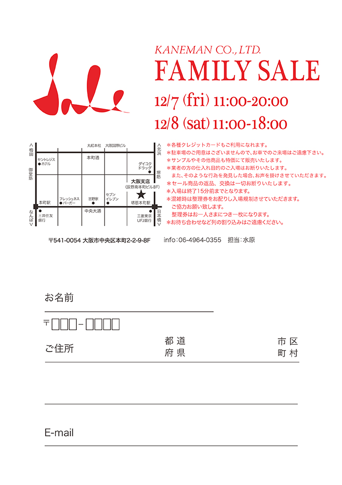大阪 Harriss、trippenなど金万ファミリーセール 2018年12月