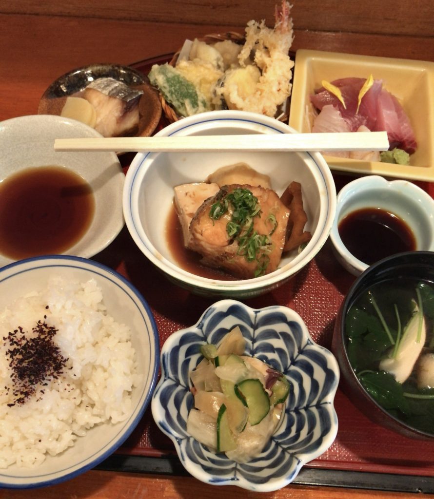 阪急中津駅近くにひっそりという感じでお店はあります。元気のいい大将と上品なおかみさんで切り盛りされているようです。1000円と1500円の定食があるのですが、1000円の市御前でも十二分に豪華です!天ぷら・焼き魚・刺身・小鉢2つがついて、この価格は...