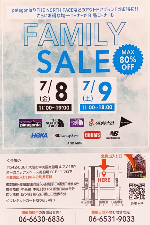 招待状不要!サンリバーファミリーセール開催(2022年12月開催)patagoniaや THE NORTH FACEなどのアウトドアブランドがお得に!さらにお得な均一コーナーやB品コーナーも!!(2022年12月・大阪開催)