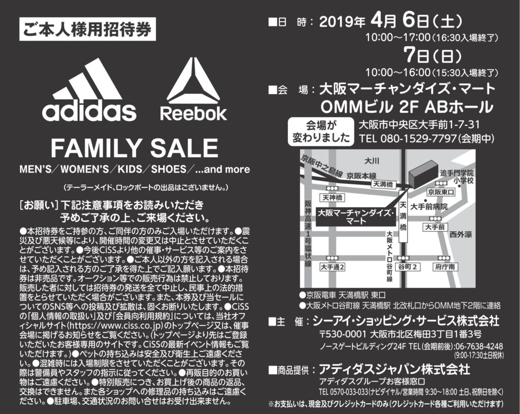 大阪 アディダスグループ ファミリーセール2019年4月開催