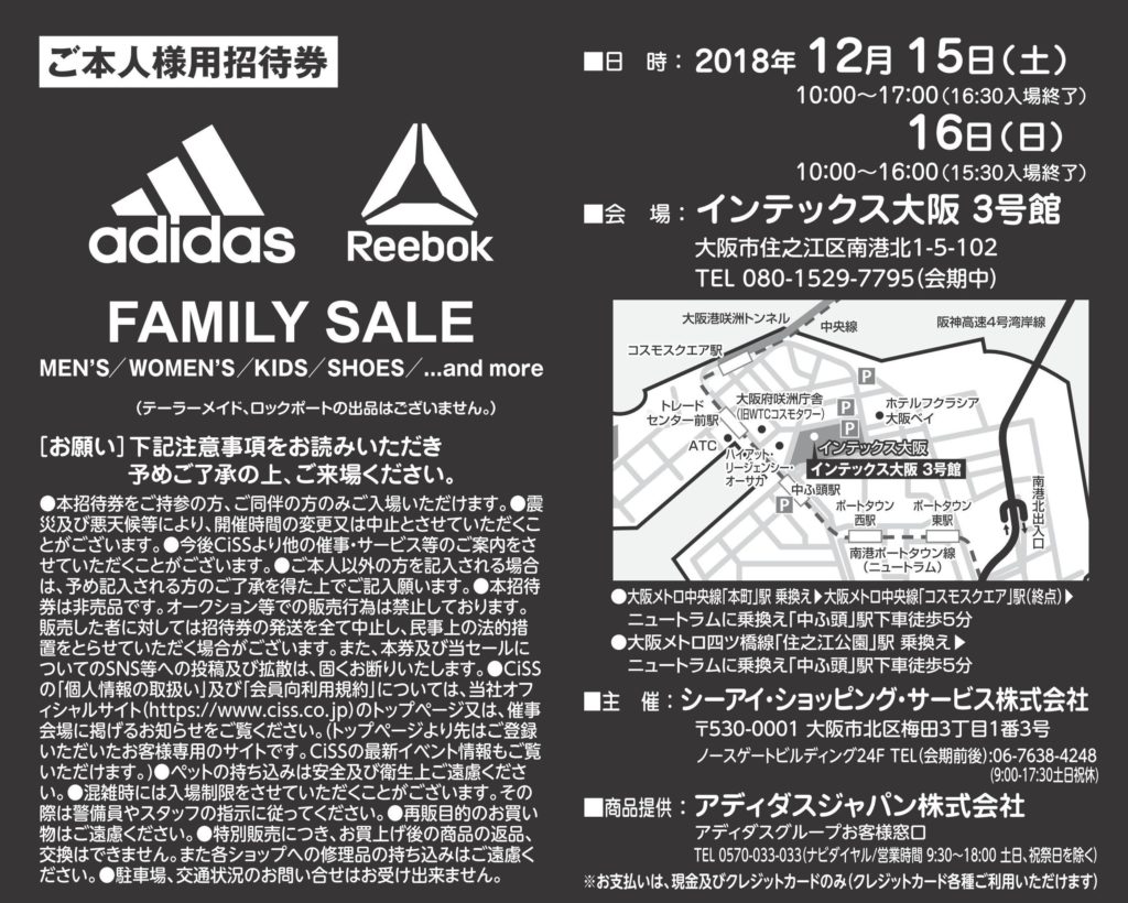 大阪 アディダスグループ ファミリーセール2018年12月開催