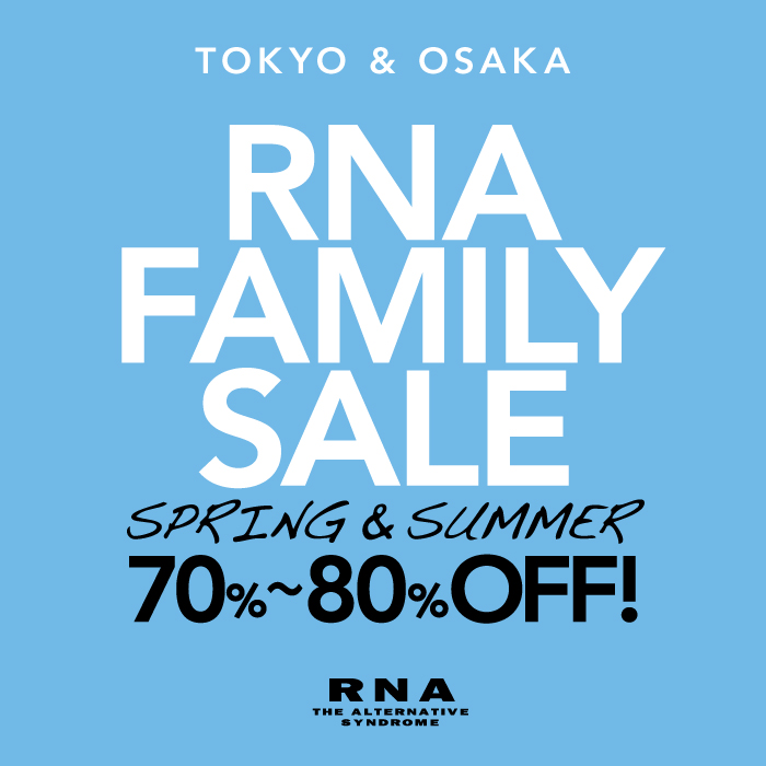 東京と大阪にて「RNAファミリーセール」が開催されます。 招待状不要でだれでも入場可能です。春夏物が70-80%OFFで販売されます。 RNAファミリーセール開催概要 東京会場 日時 5月24日(金)13:00~18:30 5月25日(土)10:00~16:00 会場 東京... -