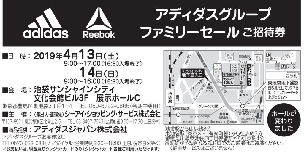 東京 アディダスグループ ファミリーセール2019年4月開催