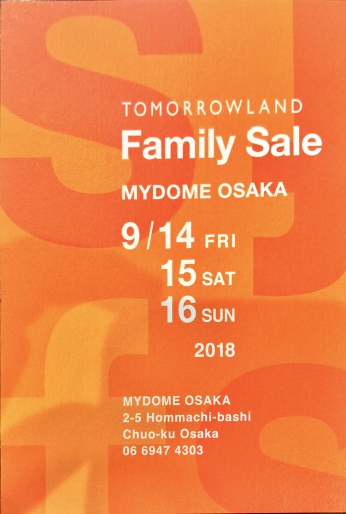 大阪 「トゥモローランドファミリーセール」開催2018年9月14-16日