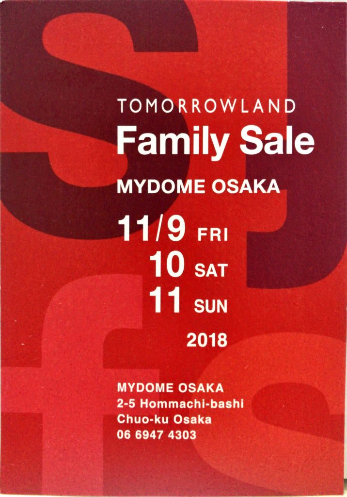 大阪 「トゥモローランドファミリーセール」開催2018年11月9-11日